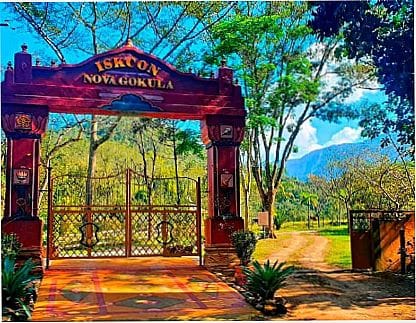 Ladeada por rio cristalino, muito verde e jardins, a Pousada Nova Gokula oferece um ambiente confortável e acolhedor, a 300 metros do Templo. Acomodações disponíveis em suítes, quartos e 01 chalé. Reservas com antecedência, conforme informações abaixo: TABELA DE PREÇOS: FINS DE SEMANAS NORMAIS Suíte-diária 1 pessoa - R$45,00 2 pessoas - R$80,00 Cama adicional R$40,00 Quarto diária 1 pessoa - R$40,0