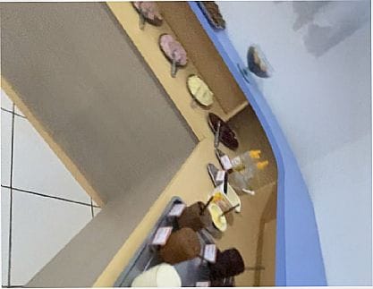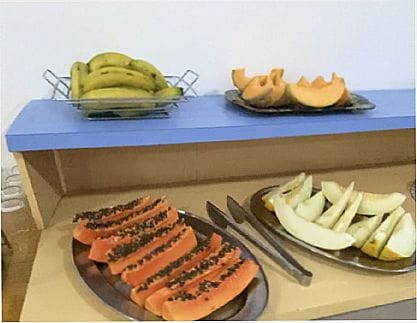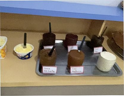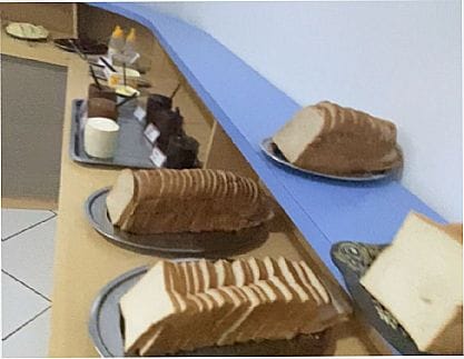 café da manhã completo com mais de 30 opções de salgados e doces.