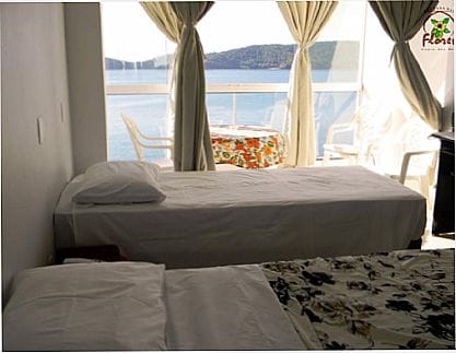 Esta é a Pousada das Flores na Praia Vermelha!! Suítes de frente para o mar, paísagem incomparável, TV por assinatura, ar condicionado, frigobar, piscina, sauna, churrasqueira, sala de jogos, wifi, estacionamento, praia, pesca e mergulho..