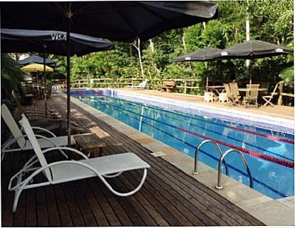 Bangalôs duplex tem 72m2, que acomodam perfeitamente 04 pessoas, mas podem receber até 06 pessoas: Varanfa à entrada com duas cadeiras de balanço, uma sala com 2 sofás bi-camas, TV, dois canais à cabo SKY, Canal de DVD coletivo, Ventilador de teto, conzinha Equipada (utensilios básicos) e um quintal amplo com churrassqueiras individuais, mesa e cadeiras. No piso superior, um dormitório de casal com uma cama Queen Size e uma varanda co rede, onde se tem uma vista privilegiada do verde da Mata Atlântica.