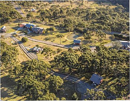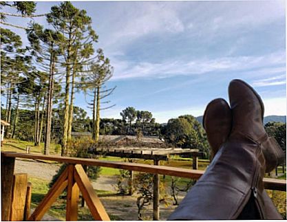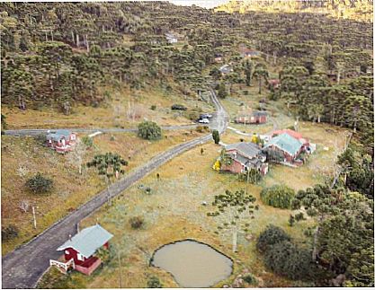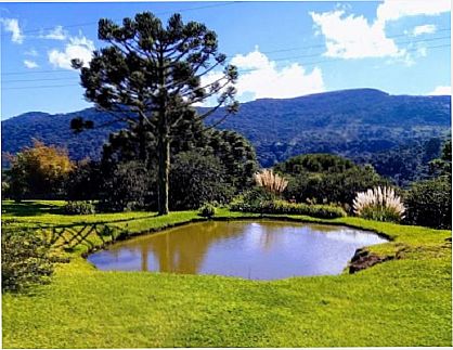 Descrição dos arrredores: Bela vista para as montanhas com araucárias, gramado exuberante e para os ouutros chalés.